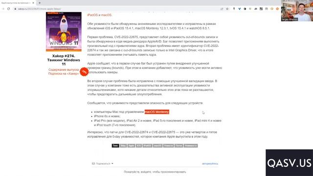 Apple выпустила экстренные патчи для 0-day уязвимостей в iOS, iPadOS и macOS. Посмотрите какие версии нужно обновить и как это сделать в нашем видео. Первый бесплатный вводный урок курсов QA Automation and QA Manual Engineer 01.2022: https://youtu.be/YWOZEIxrzFo Второй бесплатный вводный урок курсов QA Automation and QA Manual Engineer 01.2022: https://youtu.be/AxD5vEqKygw Следите за новостями рынка QA (тестирования) на нашем сайте и канале YouTube: https://www.youtube.com/SergeyEfremov_USA Онлайн курсы QA тестирования и Программирования "QA at Silicon Valley California" https://QASV.US QA at Silicon Valley California USA Курcы для новичков и действующих QA на Русском языке с английской терминологией. Получение работы QA Engineer в Америке, Европе, Канаде, России, Украине. Практика на реальных IT проектах. Бесплатные вводные уроки. Подготовка и прохождение интервью (собеседования) (interview) Готовим профессиональные Резюме и профиль LinkedIn. Программа курса QA Manual https://qasv.us/qamanual Программа курса QA Automation https://qasv.us/aboutqa Программа курса Python https://qasv.us/python Программа курса JavaScript https://qasv.us/programming Программа курса SQL/NoSQL https://qasv.us/sql Группа Facebook https://www.facebook.com/groups/qaatsv Facebook Page: https://www.facebook.com/QAatSiliconValley YouTube Channel: https://www.youtube.com/SergeyEfremov_USA Группа ВКонтакте https://vk.com/qa_at_silicon_valley Instagram: https://www.instagram.com/sergey_efremov_qa_usa QA и IT вакансии в Telegram https://t.me/qasvus