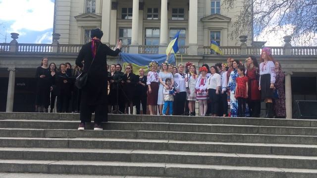 «Ой у лузі червона калина» Plac Wolnosci, Poznan, Poland, 24.04. Біженці з України + польський хор