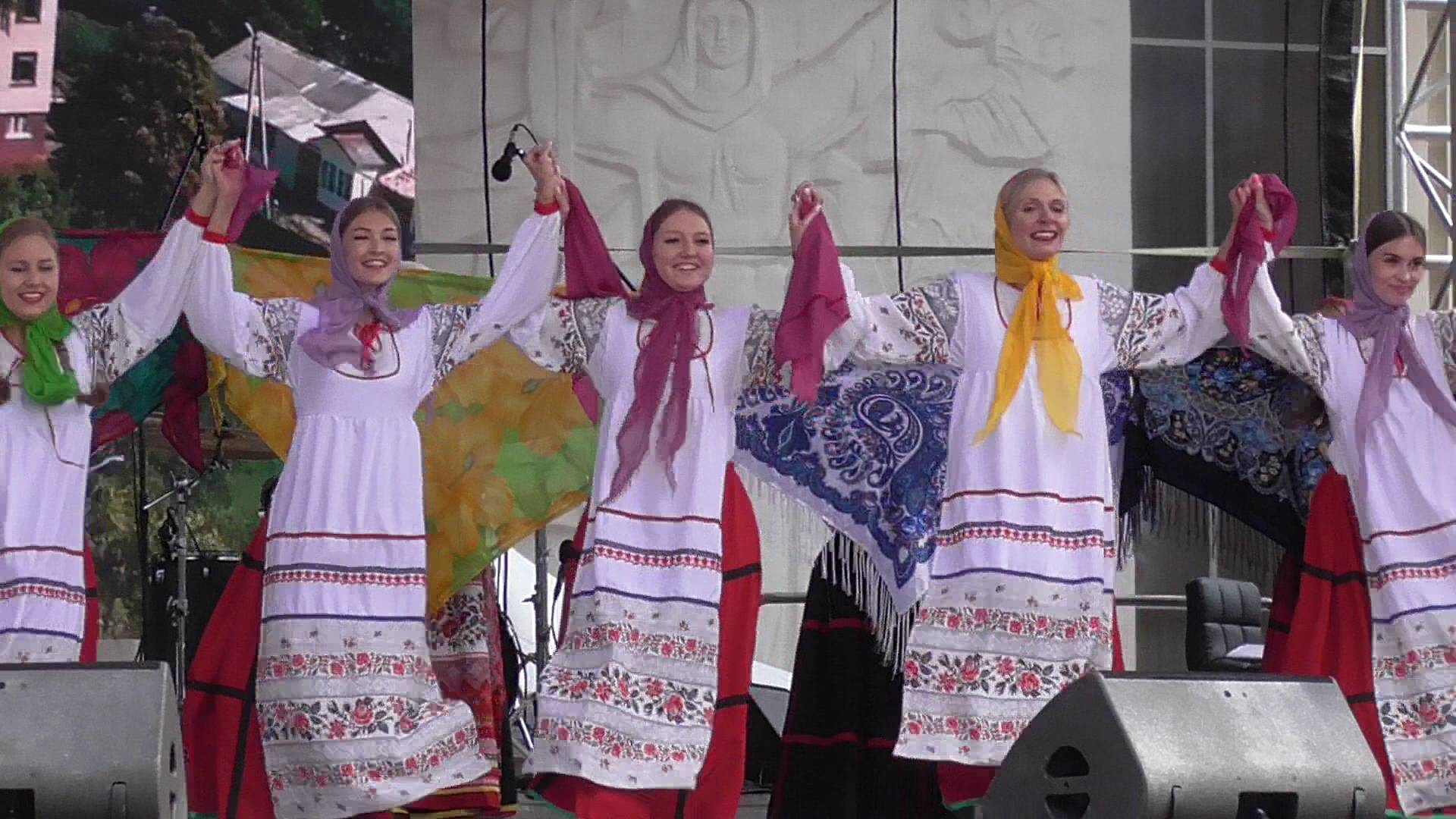 На музыкальной сцене танцуют танец. Фестиваль «Орловская мозаика» Площадь Ленина, город Орёл