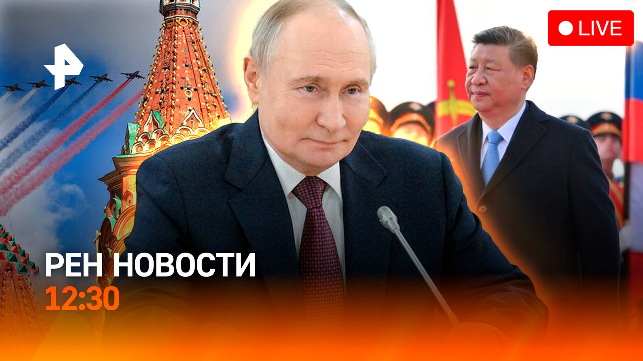 Переговоры Путина и Си Цзиньпина / Запрет на георгиевскую ленту в Германии / РЕН Новости 8.05, 12:30