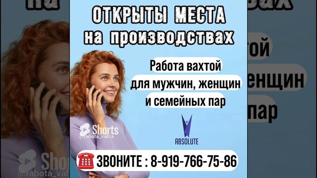 🤗РАБОТА ДЛЯ ВСЕХ Упаковщики, укладчики, грузчики. Проживание, форма - Бесплатно 💪🏼 Можно семейным парам! Совместное проживание 👩🏼👨🏻 ‼️‼️‼️ВСЕ УСЛОВИЯ РАБОТЫ СПРАШИВАЙТЕ В ОТДЕЛЕ КАДРОВ 👇🏻👇🏻 ☎️ 89197667586 (WhatsApp, Viber) http://wa.me/79197667586 ☎️ 89771289232 (WhatsApp, Viber) http://wa.me/79771289232 Наш Телеграмм канал с видео о работе и отзывами сотрудников: 👉🏻 РАБОТА.ВАХТА.АБСОЛЮТ 👉🏻 🤳🏽 https://t.me/vahta_ok Страничка ВК: https://vk.com/rabota_vahta_absolut Страничка в ОК: https://ok.ru/profile/579701607021?utm_campaign=ios_share&utm_content= #тольятти #ульяновск #нижнийновгород #челябинск #краснодар #кемерово #новокузнецк #альметьевск #липецк #тверь #иваново #нижнийтагил #курган #армавир #абакан #майкоп #калуга #смоленск #таганрог #златоуст #копейск #железногорск #ростов #елец #крым #нижнекамск #орск #арзамас #саранск