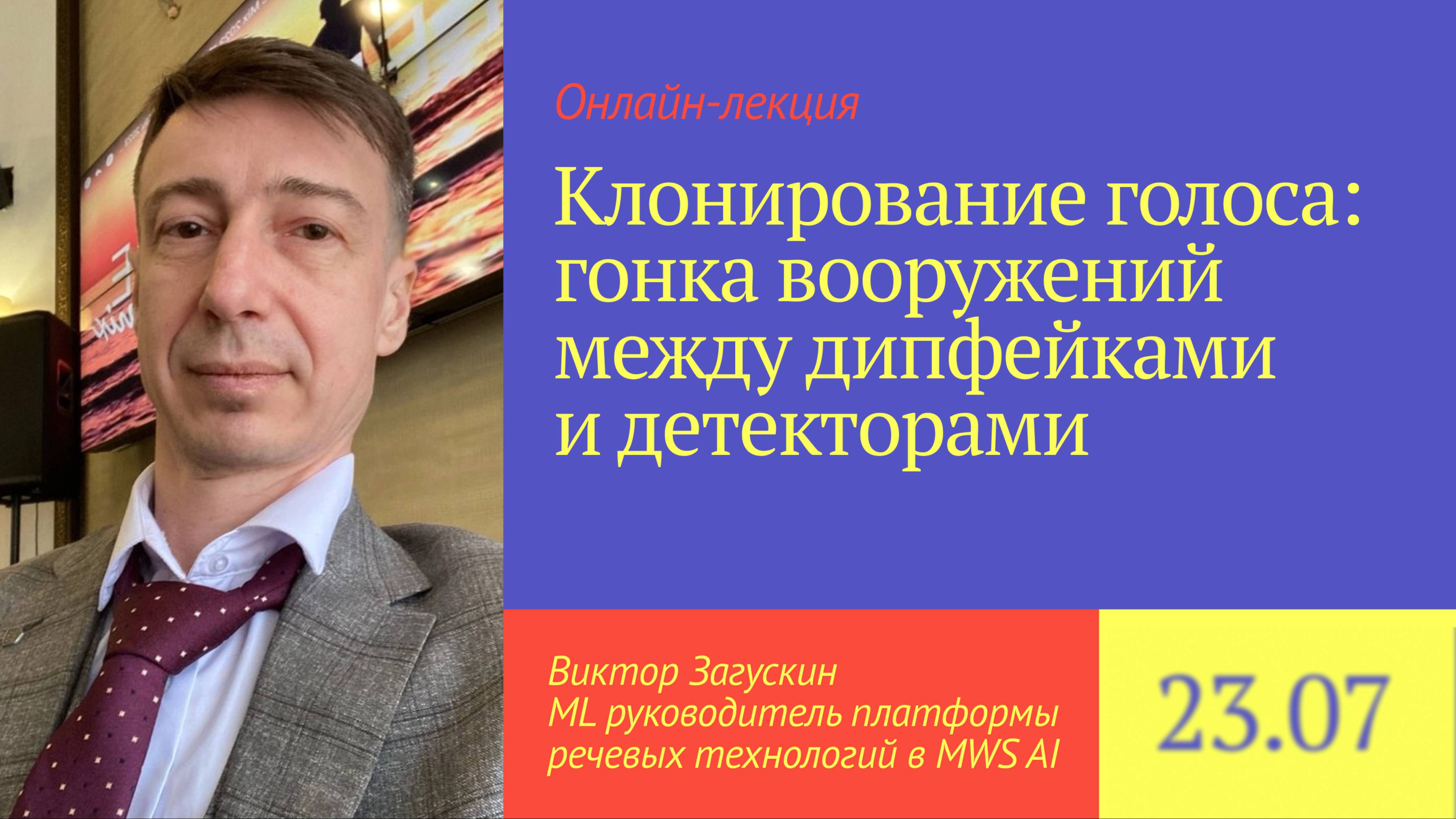Кто побеждает в гонке вооружений между дипфейками и детекторами? Рассказывает Виктор Загускин — ML-руководитель платформы речевых технологий в MWS AI, автор телеграм-канала https://t.me/SpeechAIPro. Разбираем: 🟣Эволюция синтеза: как технологии клонирования голоса достигли почти идеальной естественности — от роботизированной речи до неотличимых дипфейков. 🟣Zero-shot революция: как клонировать голоса за 3 секунды и почему это доступно даже непрофессионалам. 🟣Детектирование в действии: как современные алгоритмы «ловят» синтетику и почему это напоминает вечную игру в кошки-мышки. 🟣Этика и угрозы: реальные кейсы мошенничества, регуляторные вызовы и тонкая грань между инновацией и преступлением. 🟣Будущее биометрии: куда движется гонка технологий — от водяных знаков до квантовых методов защиты. Подписывайтесь на телеграм-канал AI4Dev: https://t.me/LLM4dev.