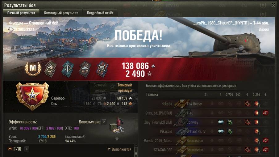 ФЬОРДЫ МАСТЕР на Т-44 обл. ОПЫТ: 1509 СУММАРНЫЙ УРОН: 6990 ШАНС на ПОБЕДУ - 42%