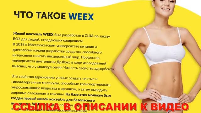 Сжигаем жир дома 👉👉👉 https://kahgo.top/Mx9U88s 🔴 WEEX - Первый живой коктейль для быстрого похудания 👉👉👉 https://kahgo.top/Mx9U88s Заказывай на официальном web-сайте 👉👉👉 https://kahgo.top/Mx9U88s Двухкомпонентный био-коктель для экспресс-похудания и очищения организма человека! - 1-ая живая формула - Оригинальная методика перемешивания - Регулирует обмен веществ - Инициирует автономный процесс жиросжигания - Чистит организм человека от шлаков и ядов ЖИВОЙ КОКТЕЙЛЬ WEEX: - Помогает основательно урезать жирные накопления в проблематичных зонах (бедра, живот). - Повышает метаболизм так, чтобы организм человека переваривал еду, а не накапливал. - Снижает объемы висцерального жирового слоя - Оптимизирует нагрузку на внутренние органы - Укрепляет сердечно-сосудистую систему - Протестирован в медицинских условиях ЧТО ТАКОЕ WEEX Живой коктейль WEEX создавался в США по заказу ВОЗ для граждан, страдающих ожирением. В 2018 в Массачусетском университете питания и диетологии запустили изготовление лекарства, способного мощно сжигать висцеральный жир. Профессор университета диетологии Др.Фокс в течении анализов обнаружил, что у молекул семечек Чиа существуют характеристики сорбента. Это качество вдохновило ученых создать чистые и гипоаллергенные молекулы, могущие переправлять жиросжигающие соединения в организм, а после того выводить жировые накопления и токсины. На основе этих молекул был создан первый живой коктейль для безопасного избавления от лишнего веса - WEEX, который продемонстрировал потрясающие конечные результаты во время медицинских проверок. В особой крышке - емкости - активный био-порошок с редкостными впитывающими особенностями. Попадая в детокс-экстракт, порошок обогащается жиросжигающими ингредиентами. В организме эти ингредиенты начинают немедля делать свое дело, а био-порошок преображается в адсорбент, притягивающий жир, яды и шлаки. “Мои клиенты - домашние хозяйки и мамаши в декретном отпуске, с которыми я занимаюсь индивидуально, на дому. Они не имеют времени на фитнесс-клубы и серьезные нагрузки, а режим даже не даёт возможность сделать выкладки диету. Но это не предлог избавляться от излишнего веса. Чтобы убыстрить конечные результаты наших тренировок и реально быстро отделаться от надоевших сантиметров, я рекомендую живой коктейль WEEX. Вместе с ним мои подшефные быстро приходят в дородовую хорошую форму и делаются подтянутыми и стройными буквально в течение нескольких месяцев.” “В центр диетологии попадают пациенты, мучащиеся не только большим весом, но и осложнениями на его фоне. С осложнениями противопоказаны гимнастические нагрузки или жесткие рационы. Для этого случая сгодится живой коктейль WEEX. Эта выдающаяся разработка получила сертификацию и поразила нас эффективностью. Заболевшие ск