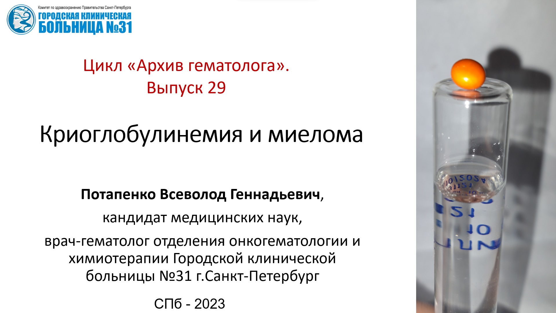 Архив гематолога. Выпуск 29. Криоглобулинемия и миелома