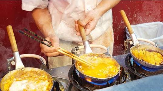 Мастерство приготовления 5 тарелок кацудона одновременно. Японская уличная еда.