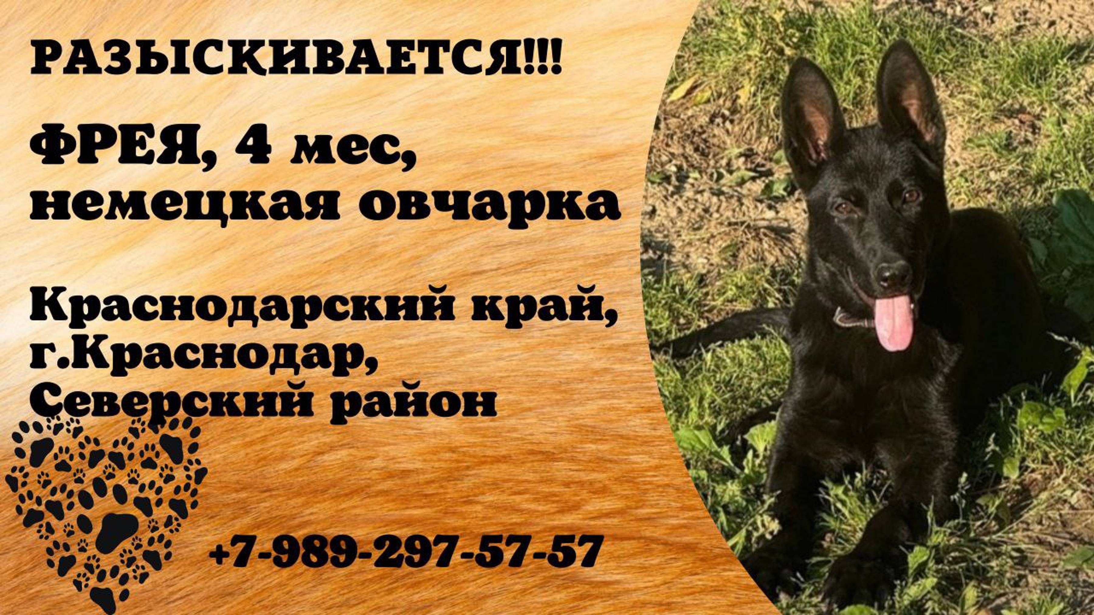 Пропала собака! ФРЕЯ. 4 мес, немецкая овчарка. Краснодарский край, г.Краснодар