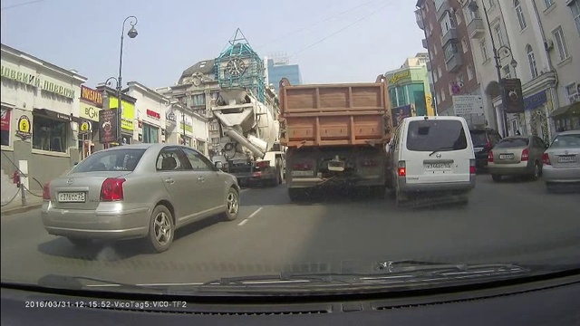 Океанский проспект. Небольшое ДТП. Грузовик притер микроавтобус.