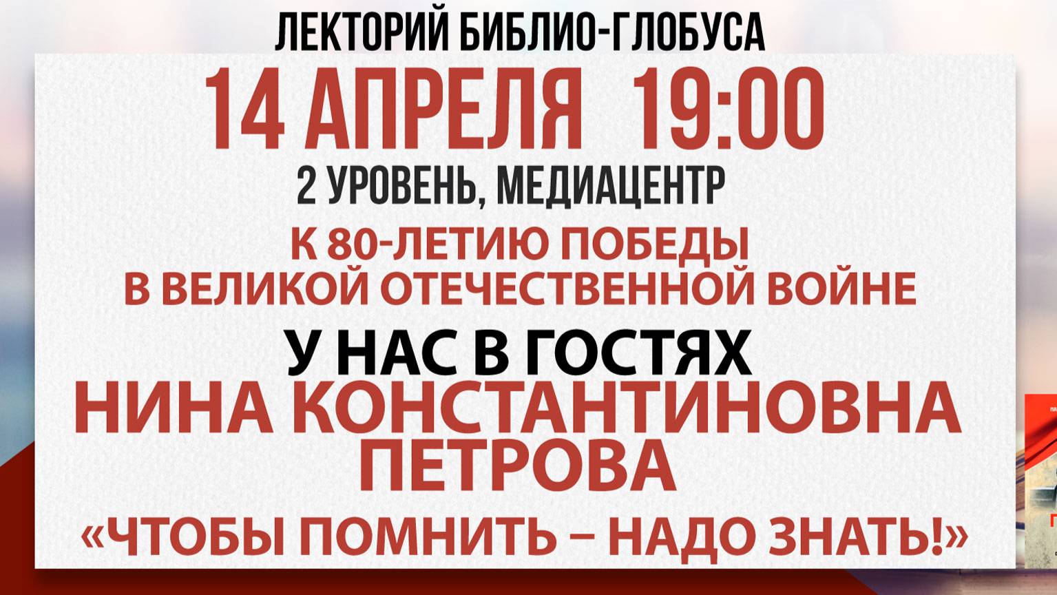 Лекторий Библио-Глобуса «Чтобы помнить – надо знать!», 14 апреля 2025