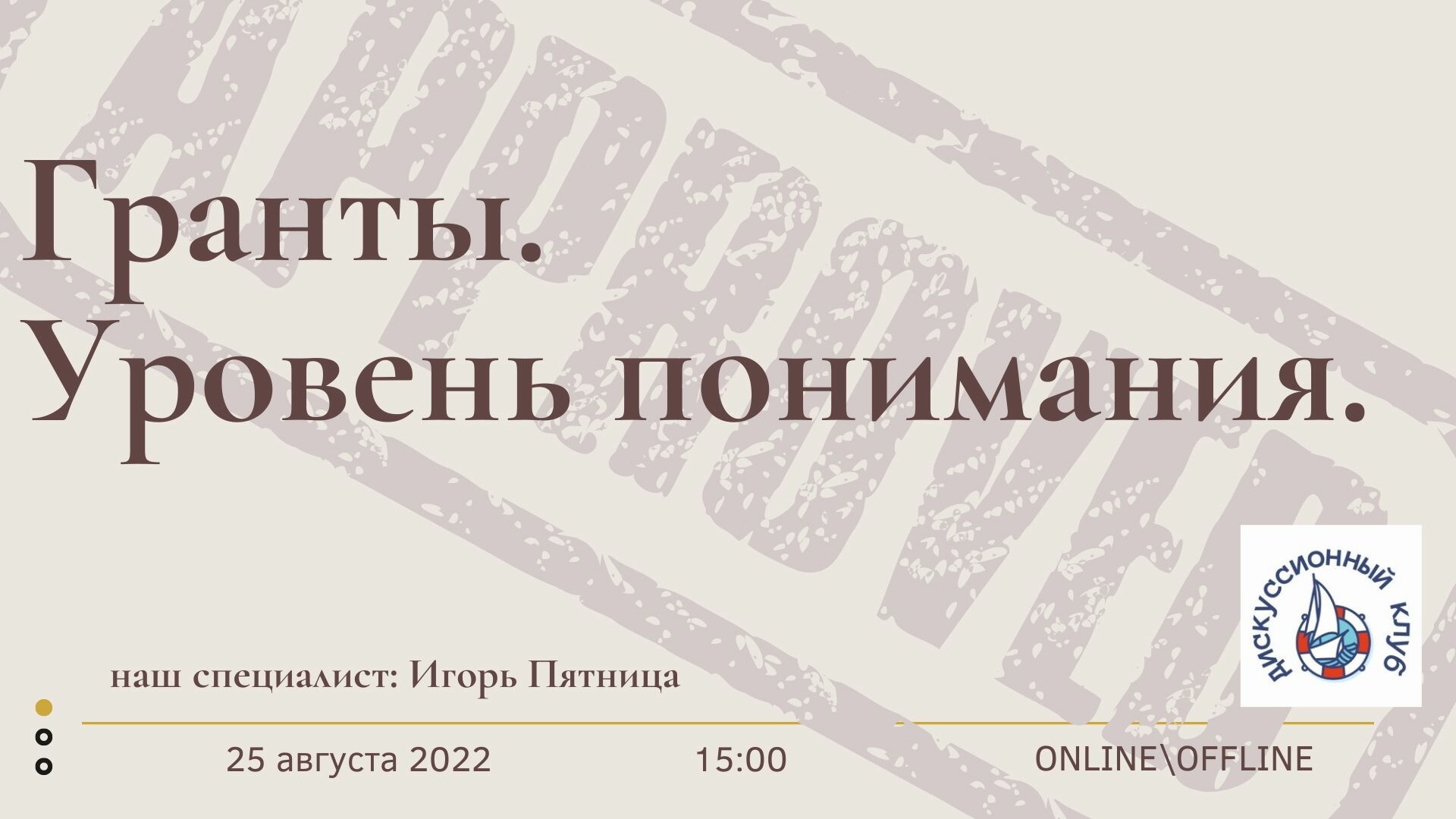 Грантовая помощь становится все более распространенным инструментом финансирования некоммерческих организаций. Кто-то получает возможность реализовать интересные и полезные проекты. А для кого-то - это череда постоянных отказов и разочарований. На встрече с Игорем Пятницей мы поговорим о том, как войти в число первых и избежать ошибок вторых. Присоединяйтесь к нам: ДЕТИ ВМЕСТО ЦВЕТОВ - https://korablik-fond.ru/kids-flowers-2022/ Дискуссионный клуб - https://club.korablik-fond.ru/ Благотворительный фонд - https://korablik-fond.ru/ Просто взять и помочь - https://korablik-fond.ru/campaign/help-us/