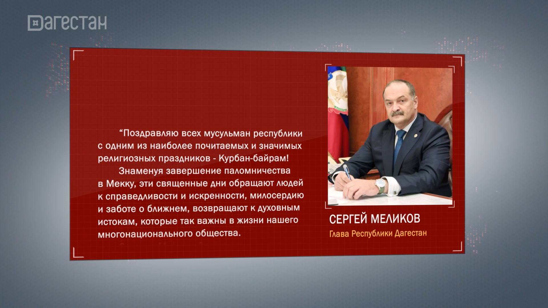 Глава Дагестана Сергей Меликов поздравил жителей республики с праздником Курбан-байрам