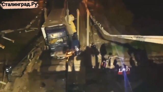 Как сообщили в МЧС, в момент обрушения на мосту находились легковушка и грузовик. Спасатели вызволили из-под обломков двоих пострадавших.