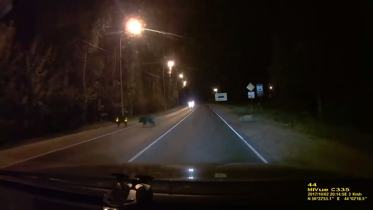 Пара встретила на дороге посреди ночи стадо мигрировавших кабанчиков #кабаны #ночь #дорога