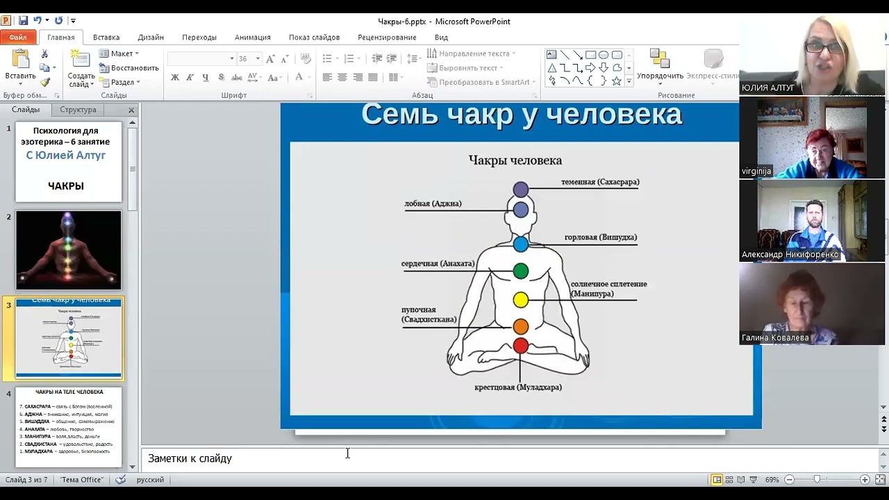 Психология для эзотерика с Юлией Алтуг 6 занятие. ЧАКРЫ часть 1.