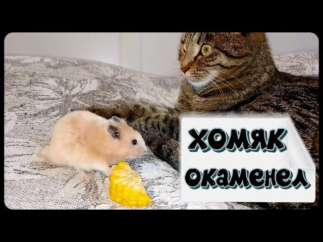 Хомяк окаменел когда услышал странный звук и кошка тоже насторожилась в этот момент..............................