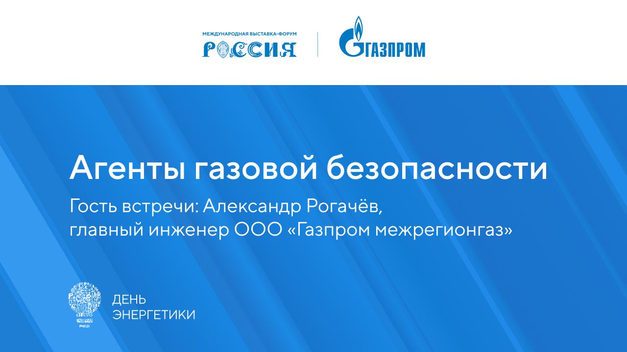 "Урок-викторина для школьников, посвященный вопросам безопасного использования газа в быту. Ежедневно около полумиллиона сотрудников «Газпрома» обеспечивают работу энергетического и нефтегазового сектора, составляющего основу социально-экономического развития страны. В рамках отраслевого Дня энергетики на выставке-форуме «Россия» в Лектории павильона «Газпром» проводит мероприятия для самой широкой аудитории, демонстрируя многообразие сфер деятельности и огромный масштаб работы. Агенты газовой безопасности – специалисты газораспределительных организаций ООО «Газпром межрегионгаз» – регулярно приходят в каждый дом, где есть газ, чтобы напомнить, как аккуратно и бережно пользоваться газовыми приборами. Своими знаниями газовики поделятся на занимательном уроке, а ученики узнают все о безопасном использовании газа дома и пройдут посвящение в настоящие агенты. Гость встречи – главный инженер ООО «Газпром межрегионгаз» Александр Григорьевич Рогачёв."