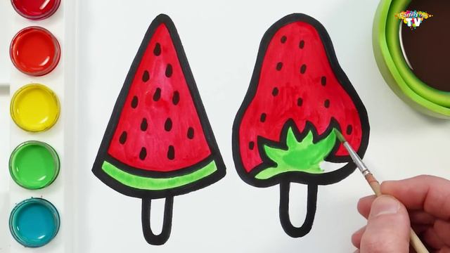 Рисование, рисование и раскраска мороженного на палочке для детей и малышей Давайте рисовать животны