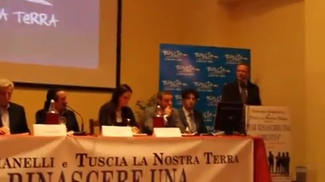 Una sala gremita di gente per Giancarlo Gabbianelli, al terzo incontro di "Tuscia, la nostra terra", tutti con la "volontà di fare qualcosa di effettivamente decisivo per la Tuscia, un incontro di intelligenze". Seguono gli interventi dei relatori: Gian Maria Cervo, Andrea Bazzo, Augusto Gigliozzi, Italo Leali, e Veronica Tasciotti. Video 1 - Viterbo, 21 Ottobre 2010.