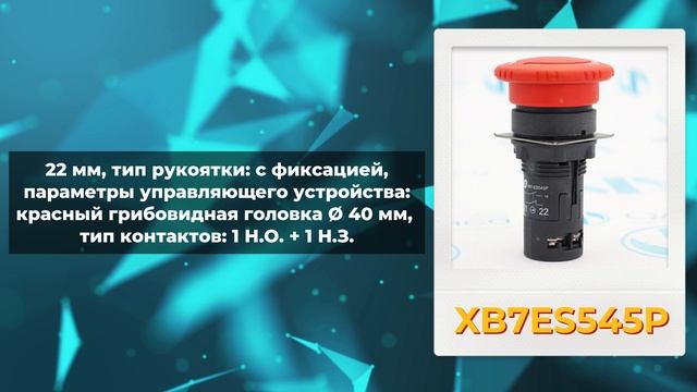 1. https://olnisa.ru/sklad/knopka/xalk17... XALK178E Кнопка аварийной остановки Schneider Electric, материал: поликарбонат, параметры управляющего устройства, одна нажимная грибовидная кнопка, состав кнопочного поста: 1 грибовидная кнопка; Ø 40 мм; красный 1 Н.О. + 1 Н.З, механическая износостойкость: 300000 циклы, момент затяжки: 0,8…1,2 Н·м, температура окружающей среды: -40…70 °C. 2. https://olnisa.ru/sklad/knopka/xb7es5... XB7ES545P Кнопка аварийного отключения Schneider Electric, 22 мм, тип рукоятки: с фиксацией, параметры управляющего устройства: красный грибовидная головка Ø 40 мм, тип контактов: 1 Н.О. + 1 Н.З. 3. https://olnisa.ru/sklad/knopka/xb4bw3... XB4BW33M5 Кнопка аварийной остановки Telemecanique/Schneider Electric, возврат поворотом, 40мм, красная, 1НЗ, диаметр отверстия: 22.5.