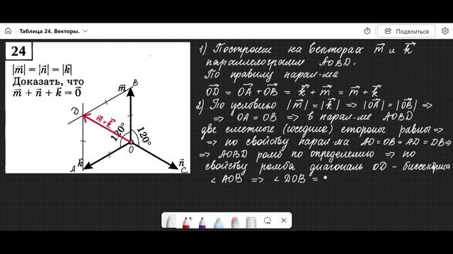 Геометрия 9 класс. Векторы в задачах на готовых чертежах № 24.
