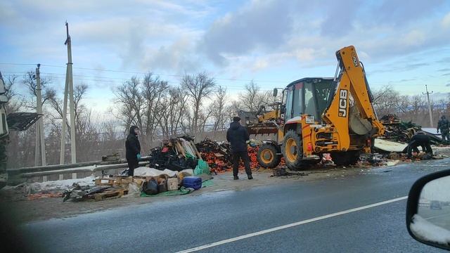 ДТП произошло примерно в 27 км от Саратова, 17 декабря 2024 года. Судя по всему, обе фуры двигались в сторону Саратова. В этом месте дорога начинает сужаться из двухрядной в однорядную. Видимо, какая-то из фур начала перестраиваться не убедившись в безопасности манёвра и машины столкнулись бортами, из-за чего у обеих машин произошло разрушение бортов и товар саморазгрузился.