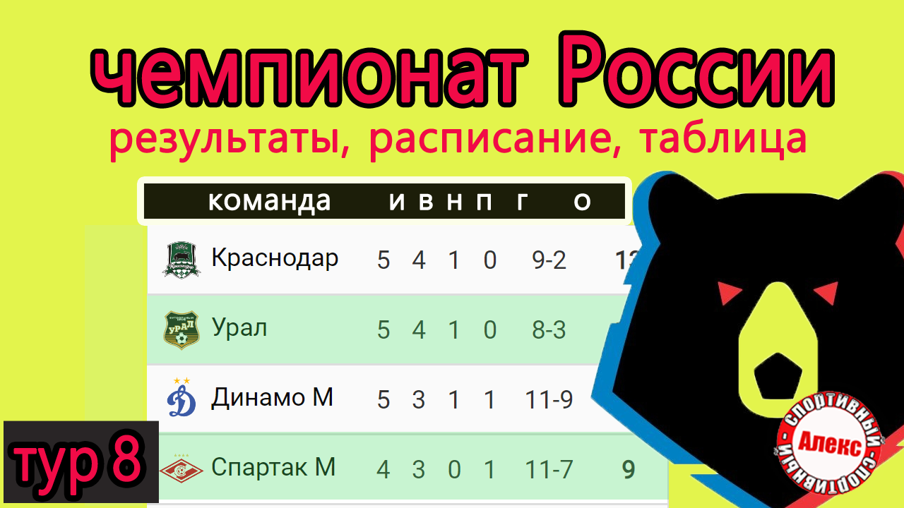 Чемпионат России по футболу (РПЛ). 8 тур. Результаты. Расписание. Таблица.
