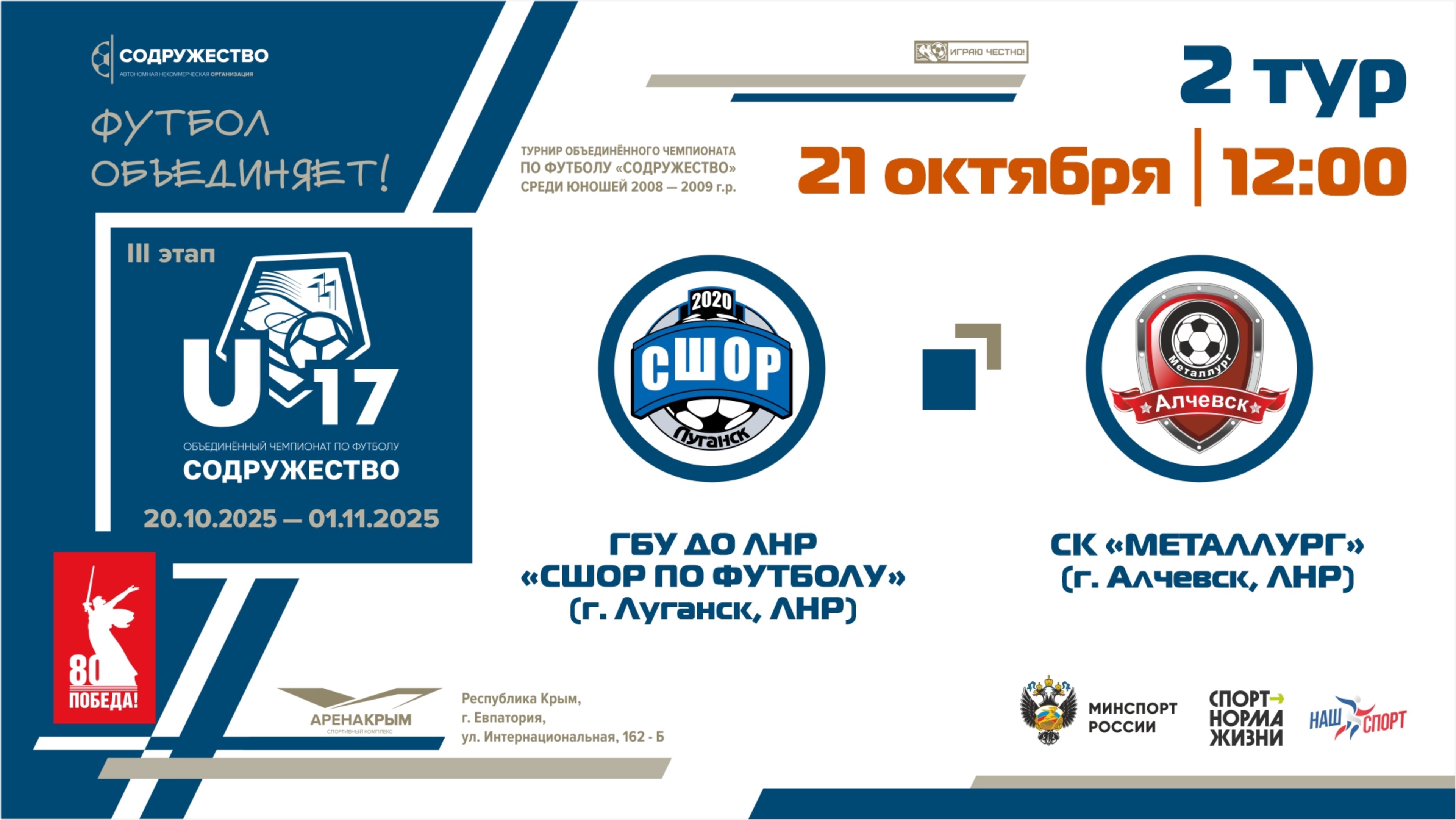 2 ТУР | U-17 | ГБУ ДО ЛНР «СШОР по футболу» (г. Луганск) - СК «Металлург» (г. Алчевск) | 21.10.2025
