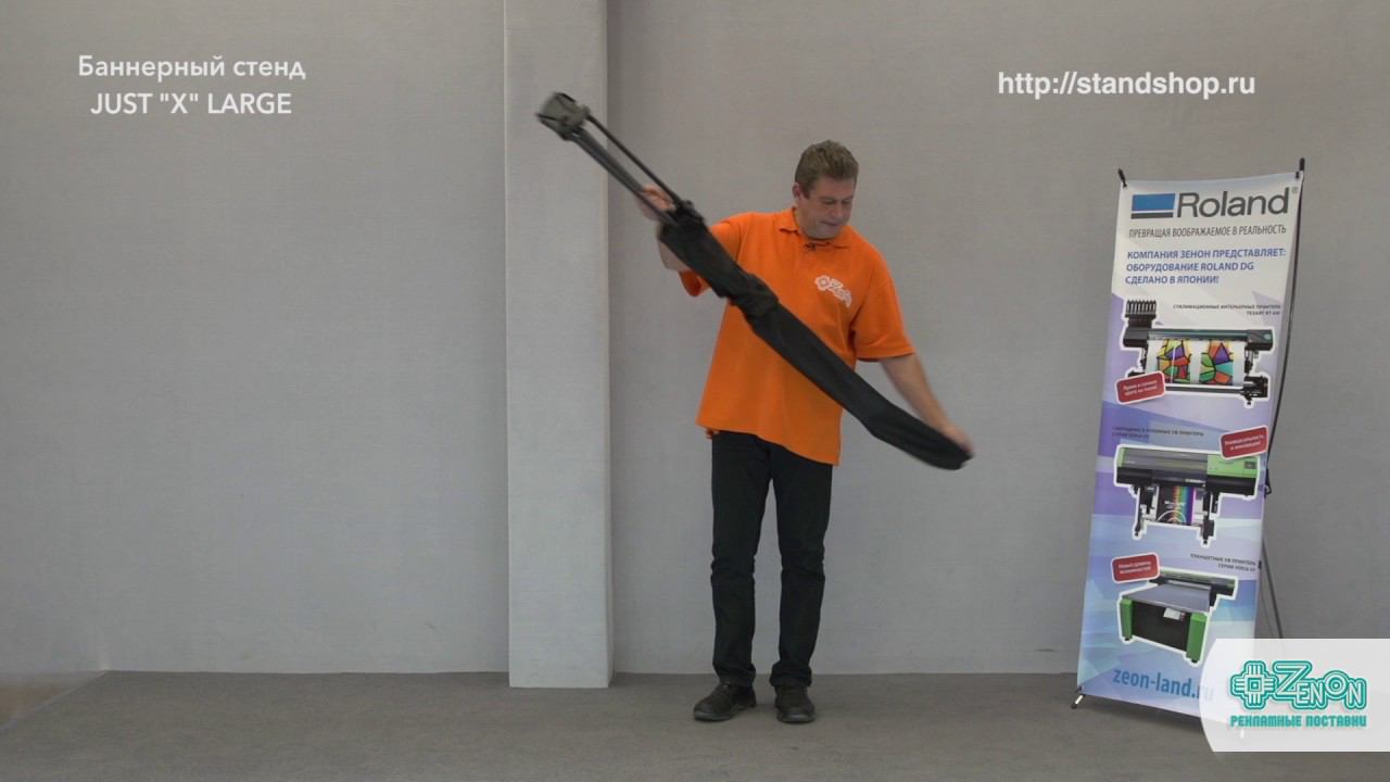 Баннерный стенд - JUST X Large http://zenonline.ru/cat/000019962 Цвет - черный. Материал - металлический сплав, пластик, углепластик. Обладает повышенной устойчивостью. Время монтажа - 15-30 секунд. Рекомендуемый размер рекламного поля - 120 х 200 см. Постер растягивается на люверсах. Рекомендуется укреплять углы постера с внутренней стороны в местах установки люверсов. Матерчатый чехол - в подарок!
