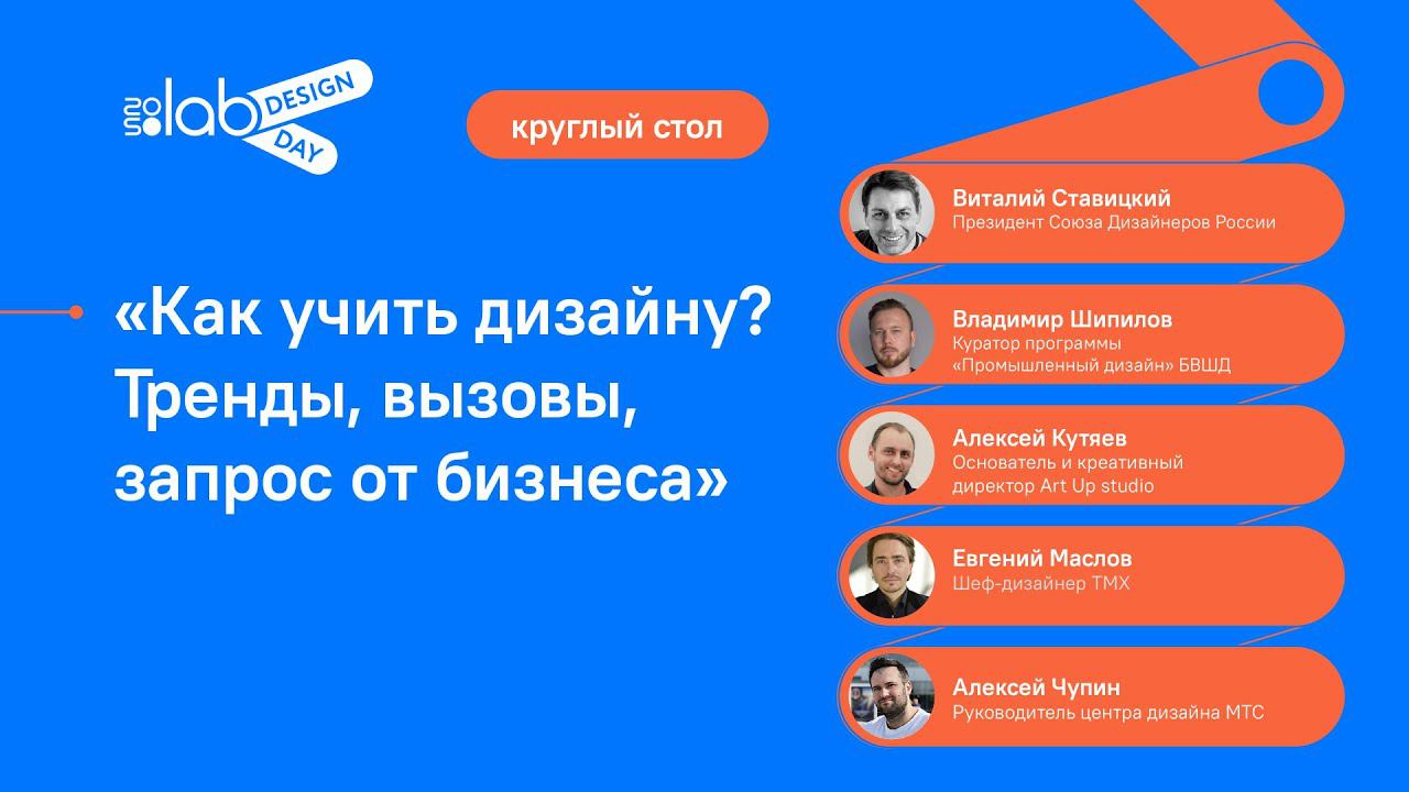 Круглый стол «Как учить дизайну? Тренды, вызовы, запрос от бизнеса» Виталий Ставицкий, президент Союза дизайнеров Владимир Шипилов, куратор программы «Промышленный дизайн» БВШД Михаил Крапивной, основатель дизайн-студии Man&Technologies Алексей Чупин, руководитель центра дизайна МТС Евгений Маслов, шеф-дизайнер ТМХ