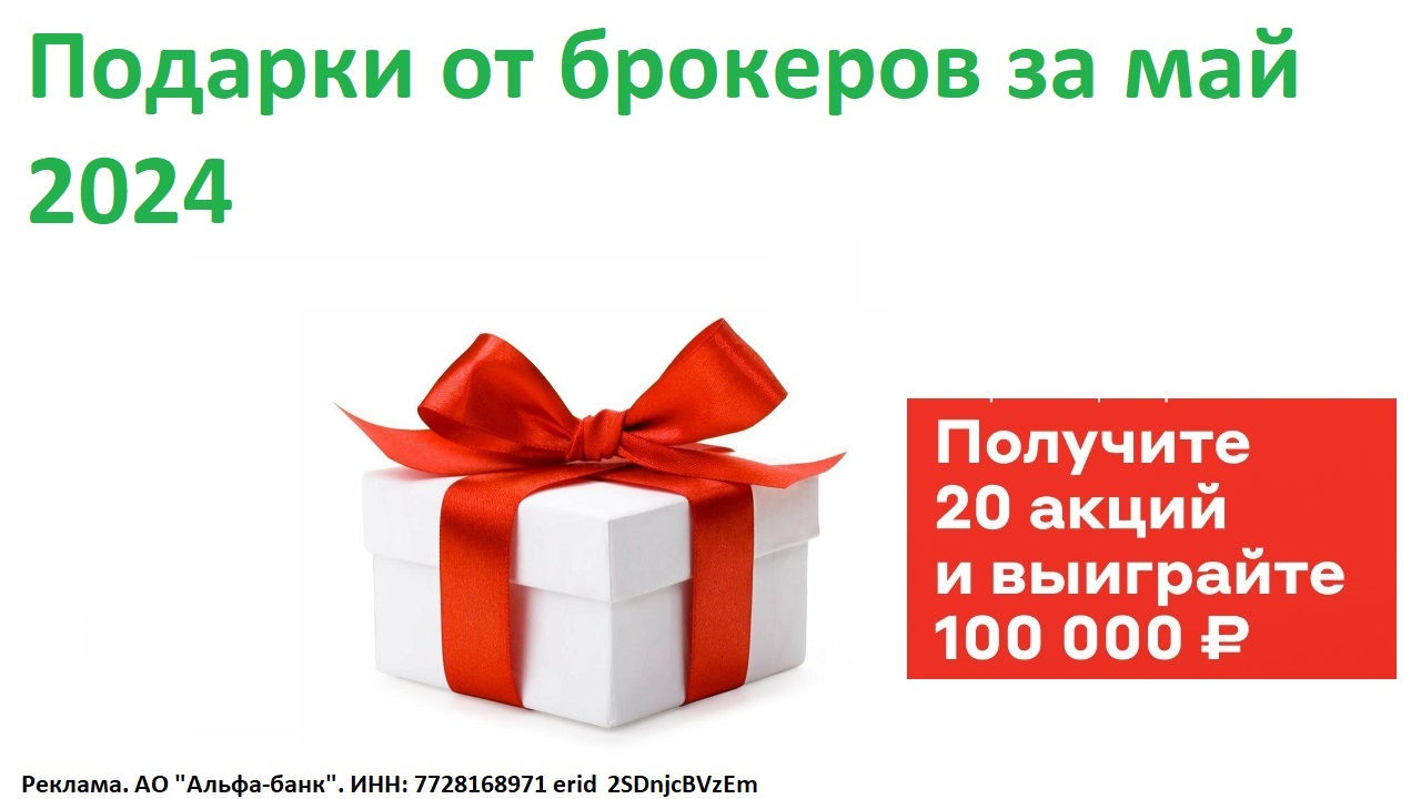 Альфа Инвестиции дарят 20 акций и возможность выиграть 100 000 рублей! 🤩 Забираем 20 акций БЕСПЛАТНО: https://gtblg.ru/FuibOU?erid=2SDnjcBVzEmhttps://gtblg.ru/FuibOU?erid=2SDnjcBVzEm ✅Откройте первый брокерский счёт в Альфа-Банке с 1 мая по 31 мая включительно ✅ Купите любые ценные бумаги на сумму от 1000 рублей (общая сумма покупки) ✅ 20 акций в подарок будет начислены в период 15.06 — 25.06 А еще Вы автоматически станете участником розыгрыша на 100 000 рублей 🎁 Разыгрывают деньги каждую неделю до конца мая! Шансы есть у всех! Реклама АО «Альфа-банк», ИНН 7728168971