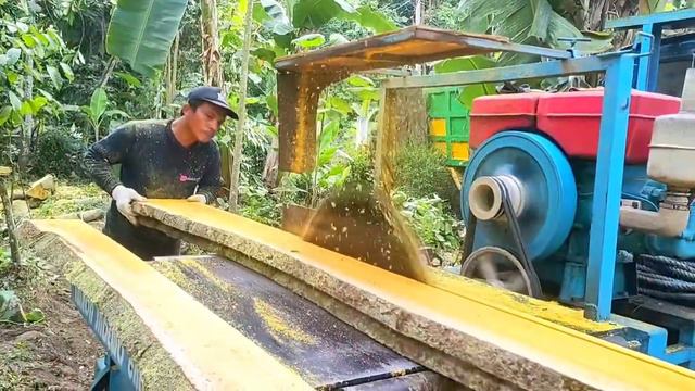 Камбоджа, распил деревьев в лесу. Бензиновая пилорама.