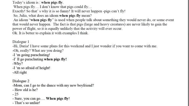 Школа Английского Языка в Пушкино _ Качественное образование в России _ Идиома Идиома: When Pigs Fly (Идиома — это устойчивое выражение, значение которого нельзя понять буквально, исходя из смыслов отдельных слов, входящих в него. Это «единица» языка, которая употребляется как целое, а ее смысл определяется всей фразой, а не суммой ее частей. Идиомы делают речь более яркой и образной.) 5...10 минут в английской ауре и уже сделан маленький шажок вперед в очень важных навыках – чтение, перевод, говорение и восприятие языка на слух))) А. Майоров 08 октября 2025