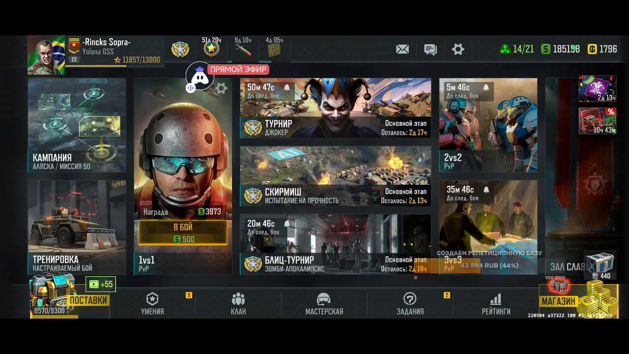 Поддержка автора по ссылке: https://www.donationalerts.com/r/rincks Бланк банк 4375571500040653 телеграм группа для подписчиков https://t.me/art_of_war_3_rincks_sopra Продлить стрим:300 руб Смена фракции:200 руб Тренировка:300 руб 2х2: по совести Покажи кач: миллион рублей Закончить стрим:1000 руб Так же можно заказать челлендж. тоесть дать стримеру задание за определенную сумму. Например: сыграть только авиацией или вообще без неё,ну и так далее. Ссылка на игру: Долго искал настоящую стратежку на телефон, как старкрафт. Наконец нашел Art of War 3! Очень крутая игра! Вот ссылка, качай, тебе понравится: https://redirect.appmetrica.yandex.com/serve/169878688668608468?recruiter_id=1111515909