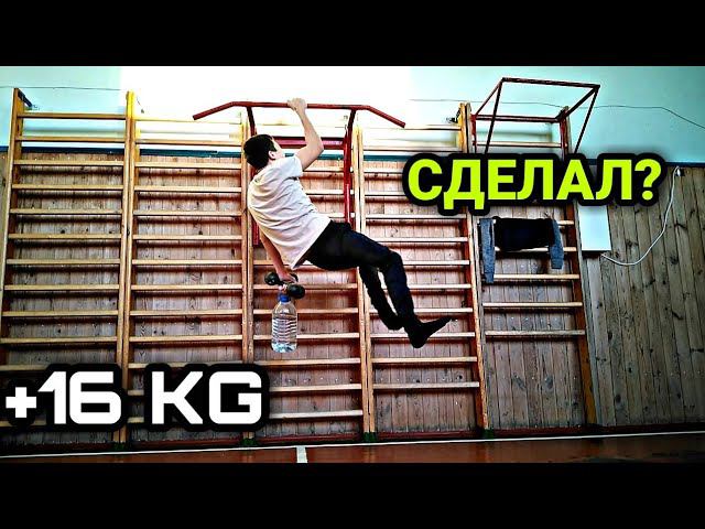 Попытка подтянуться с весом +16 кг на одной руке