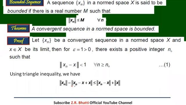 Convergent Sequence in Normed Space is Bounded Functional Analysis, Z.R. Bhatti