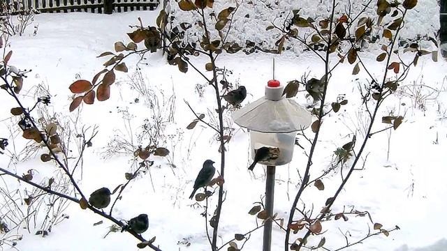 Птицы у кормушки октябрь зима