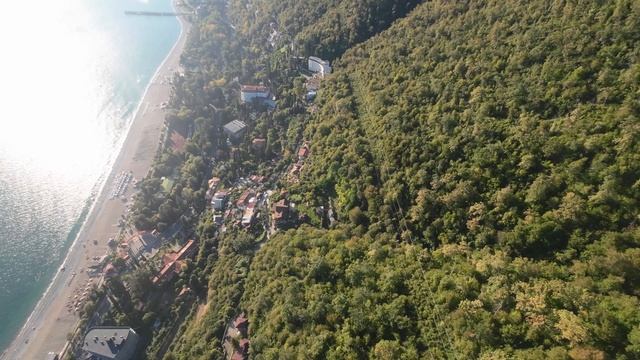 Полёт моего дрона с камерой над Гагрой. Стартовал из заброшки, которая здесь гордо именуется крепостью Абаата. 23 сентября 2025