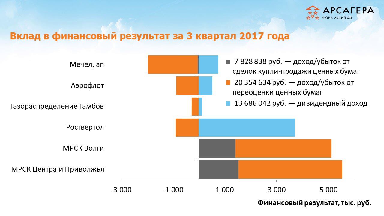 Наши фонды. Арсагера - акции 6.4. 3 квартал 2017