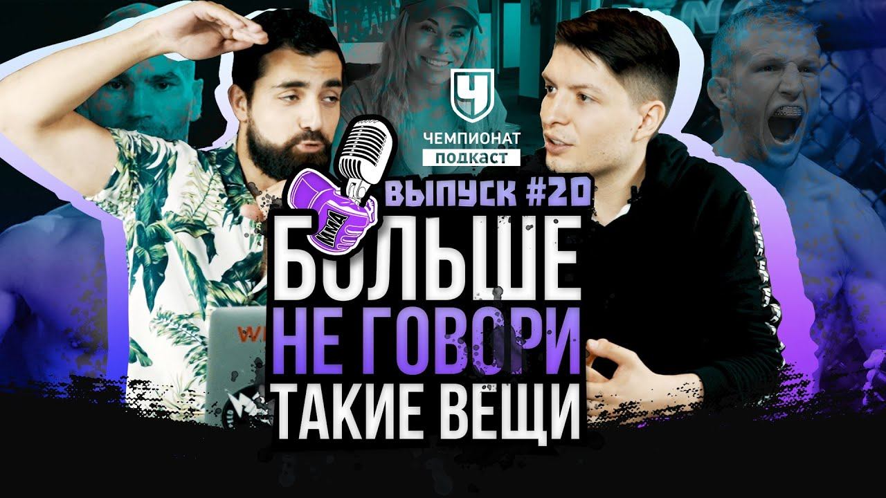 ЮБИЛЕЙНЫЙ 20-й и самый длинный эпизод ММА - подкаста "Больше не говори такие вещи" уже здесь. Мы верны традициям - это по-прежнему обсуждение всех актуальных mma тем. Чемпионат подкаст - ПОЕХАЛИ! Здесь у нас из тем: Как Махачев оказался в топ-5? Ограбили ли Сэндхагена? Заслужил ли Тиджей? Побег Миочича, прощание с Лобовым, Апсет Остович, Печальный Тайрон Вудли и стероидная ярость Гектора Ломбарда; Конор Макгрегор, который заставляет нас грустить. Годный Bellator в эти выходные, Олимпиада, черные пояса по БЖЖ и многое другое. Немного шуток, немного бомбежки, немного ответов на ВАШИ вопросы. (ТАЙМКОДЫ ниже!) Уже по традиции Давид Багдасарян (aka Hardcore MMA) и Олег Володин помогут вам органично влиться в мма - движение. Все минувшие и грядущие турниры в UFC и Bellator, новости, рейтинги и так далее. Это "Больше не говори такие вещи" на Чемпионат Подкаст. Как найти нас в социальных сетях: Давид Багдасарян в инстаграме: https://www.instagram.com/hardcore.mma/ Проект Давида на Youtube: https://www.youtube.com/channel/UC6OCnksNRXOQvXi3H06nNOg Олег Володин в инстаграме: https://www.instagram.com/volodin_mma/ Слушайте на удобных платформах: • в iTunes https://apple.co/34doqxL • в Google Podcasts https://bit.ly/3bDTieG • в «СберЗвук» https://bit.ly/3yq9cTW • в «Яндекс. Музыке» https://bit.ly/3v3esdS • в плеере Castboх https://bit.ly/3f0nCSX • в плеере Podster https://bit.ly/3bDTmLs Тиджей - это Ограбление? Махачева Тащат? Макгрегор -это печально. Остович, Лобов, Олимпиада, Подкаст ТАЙМКОДЫ: 0:00 – Всем привет! Начинаем юбилейный 20-й выпуск подкаста «Больше не говори такие вещи». 0:59 – Ислам Махачев резко прыгнул в топ-5. Разбираемся, есть ли в этом хоть какая-то справедливость. 11:28 – Сэндхэген против Диллашоу. Кори ограбили? 24:28 – Каким вернулся Диллашоу? Он уже не тот? 28:52 – ТиДжей заслужил титульник? И что теперь делать Сэндхэгену? Он выбыл из титульной гонки? 38:54 – «Откуда берутся такие судьи?» Обсуждаем спорные решения с прошедшего турнира. 01:00:48 – «Столкновение сисек» закончилось в пользу Остович. ВанЗант хоть немного тренировалась? 01:08:22 – Артем Лобов ушёл. Сумел ли он сбросить с себя ярлык «просто друг Конора»? 01:12:35 – Немного «около ММА»: грязные твиты Конора и стычка Ломбарда с Вудли. 01:23:25 – Справедливо ли давать титульный реванш Колби Ковингтону? И кто будет следующим претендентом: Бёрнс, Эдвардс или Диаз? 01:33:20 – Стипе Миочич пытается сбежать из UFC в Азию? Какой смысл? И может ли он реально уйти? 01:39:58 – Турнир UFC 267 не будут продавать по системе PPV. Что стоит за таким решением? 01:50:12 – В Беллатор пройдет один из самых ожидаемых турниров года. Кто фаворит в паре Фрейре - Макки? Каким будет дебют Ислама Мамедова? 02:05:52 – Ближайший турнир UFC теряет российских бойцов. На кого стоит посмотреть в этом карде? 02:07:49 – Почему мы сказали, что Олимпиада - соревнование для любителей. Объясняем! 02:15:26 – Отвечаем на вопросы подписчиков: про черные пояса в БЖЖ, о непредвзятости во время комментирования, проблемах весогонки, необычных сабмишенах и нашей любимой музыке. 02:48:54 – У нас все. А с вас как всегда лайки, подписки и фидбек. И не забывайте следить за нами в соцсетях (все ссылки есть в описании). #юфс #подкаст #мма