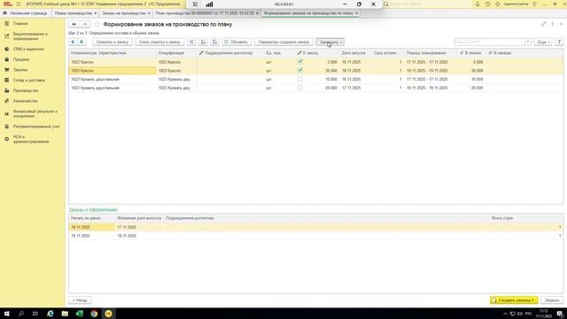Формирование заказов на производство по плану в 1C:ERP