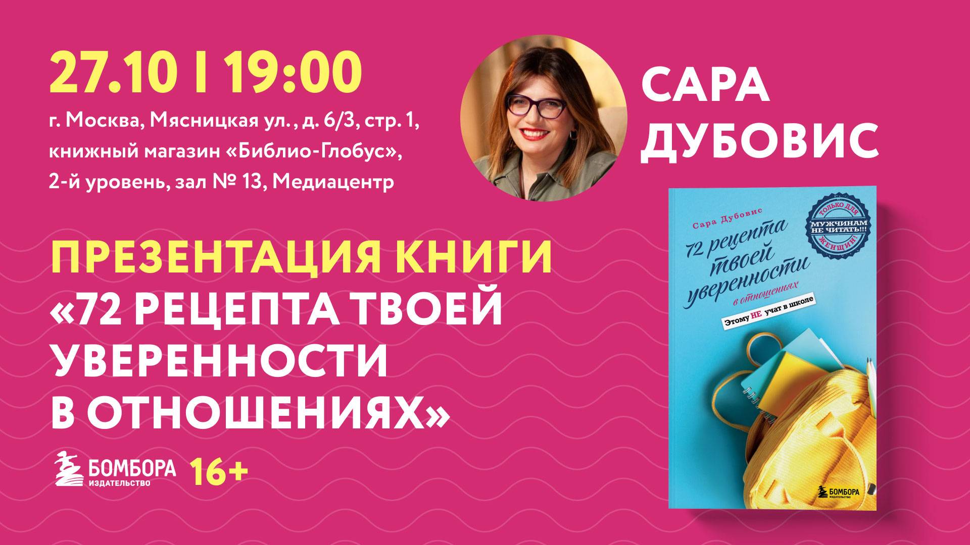 72 рецепта любви и уверенности: встреча с Сарой Дубовис, 27 октября 2025