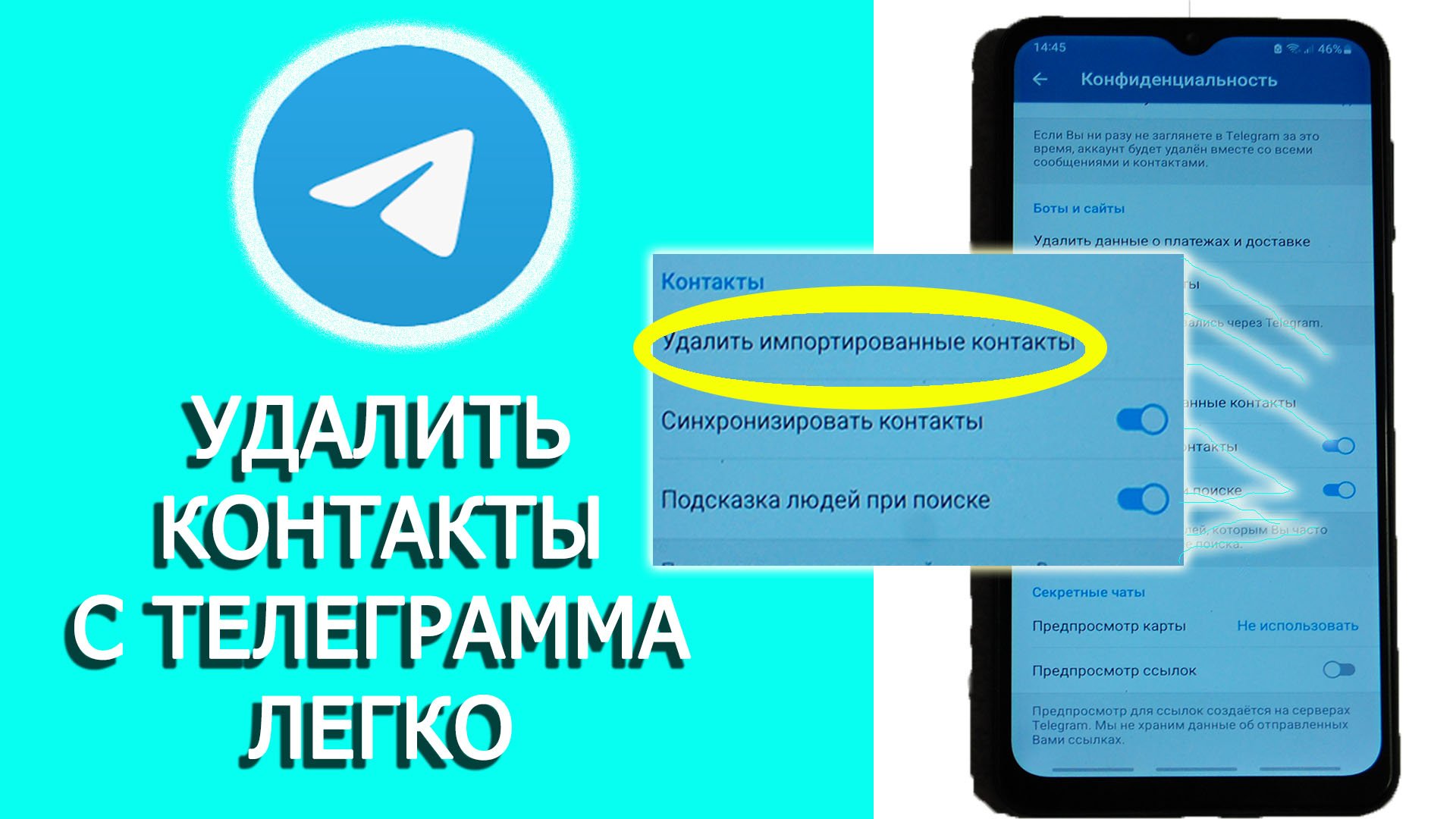 как удалить контакты с телеграмма