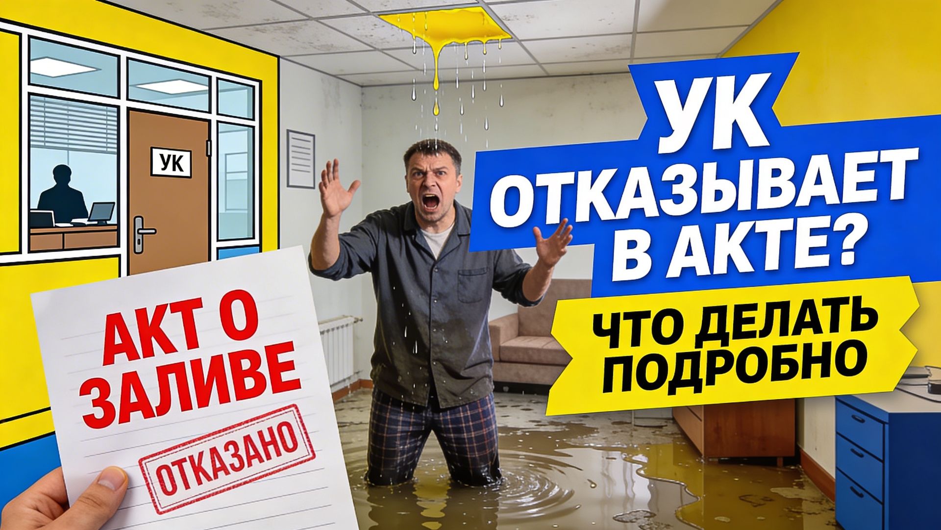 Позвоните и проконсультируйтесь с нашими юристами. УК отказывается выдавать Акт о заливе? Вот что делать! 🏠💧 Затопили квартиру, а управляющая компания игнорирует вас, тянет время или просто отказывается составлять Акт о заливе? В этом видео мы разберём все причины, по которым УК уклоняется от своих обязанностей, и дадим пошаговый план действий, который поможет вам защитить свои права и получить необходимые документы — даже без участия УК. Из этого видео вы узнаете: Почему УК отказывается выдавать Акт о заливе и что за этим стоит Как правильно подать Заявление в УК с предупреждением — и что писать, если они его не принимают Как составить свой собственный Акт осмотра в свободной форме без юридического образования Что обязательно должно быть указано в Акте, чтобы документ имел вес Кого взять в свидетели и как правильно их оформить Как выстроить логическую цепочку документов для суда или страховой Это видео для вас, если: ✅ УК не реагирует на ваши обращения ✅ Мастер пришёл, но Акт так и не выдали ✅ Вы хотите самостоятельно зафиксировать ущерб и не потерять деньги 📞 Нужна помощь? Для жителей Москвы и Санкт-Петербурга рекомендуем обратиться в Центр помощи при заливах Санкт-Петербург: 8 (812) 407-25-43 Москва: 8 (495) 374-87-65