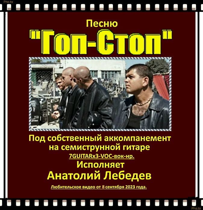 Анатолий Лебедев из Питера. ЛЮБИТЕЛЬСКОЕ ВИДЕО Анатолия Лебедева с его исполнением песни "ГОП-СТОП" под собственный аккомпанемент на семиструнной гитаре. Автор песни - АЛЕКСАНДР РОЗЕНБАУМ Исполнитель _ Анатолий Лебедев. Видеозапись исполнения песни,работа со звуком и монтаж видеоролика сделаны А. Лебедевым 8 сентября 2023 года.