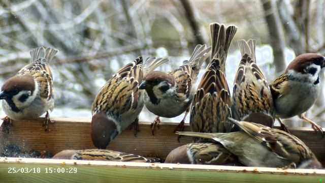 Воробьи в кормушке