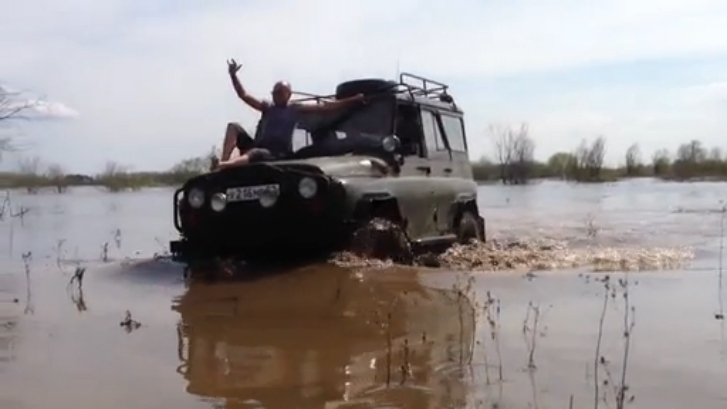Парни занырнули на УАЗике :)