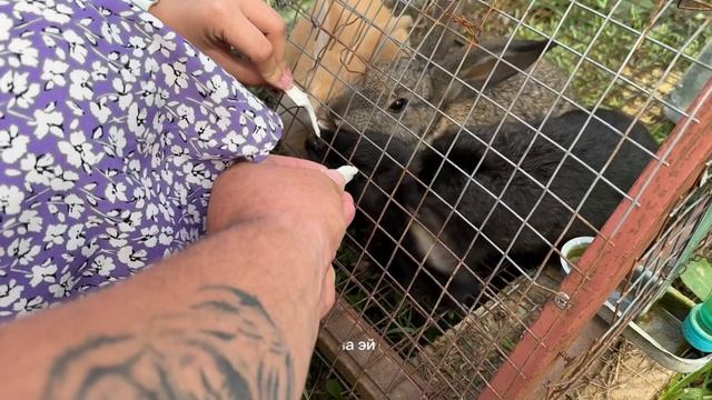 Кормим кроликов. А вы любите кролей?