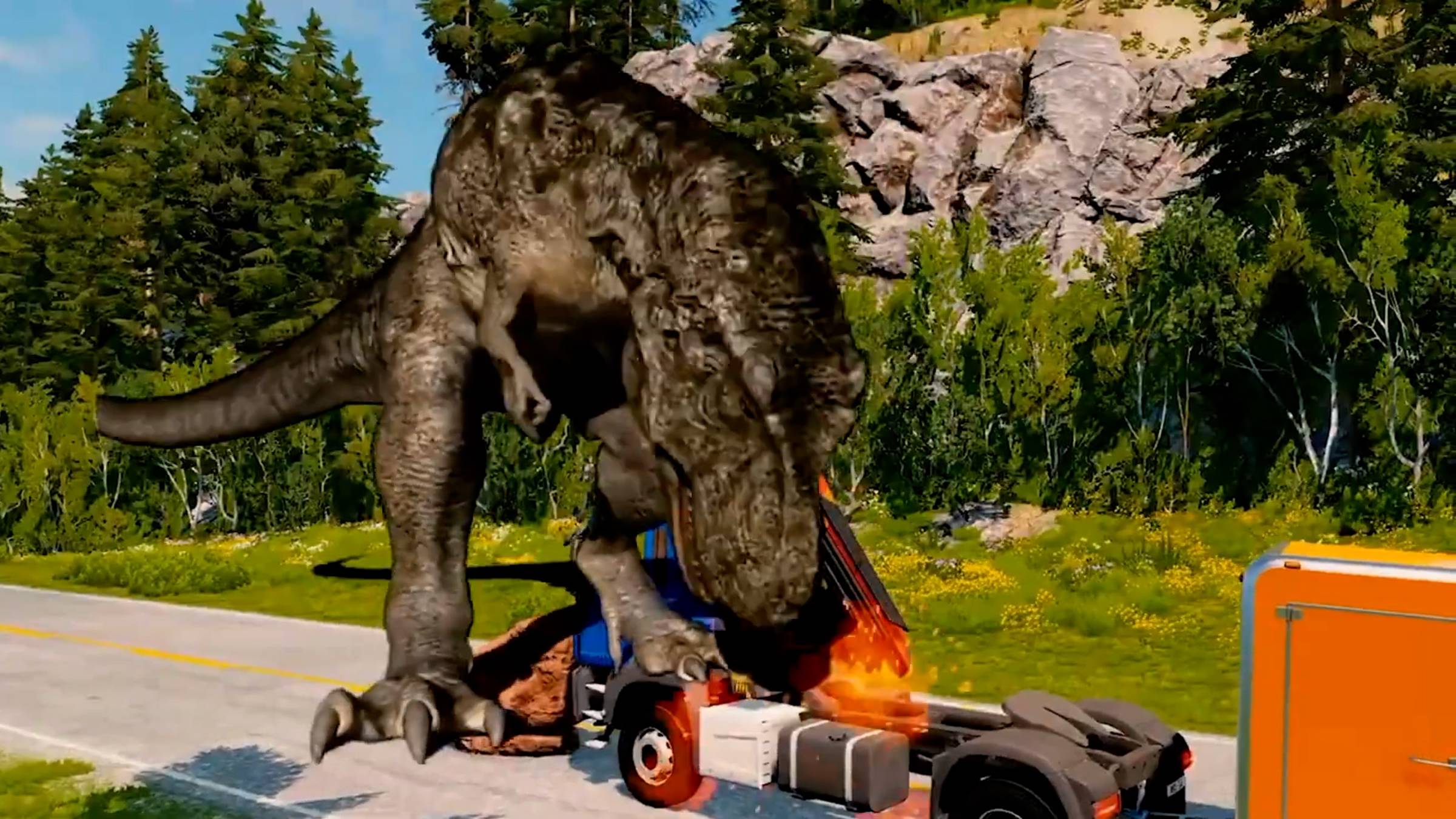 Мультфильмы для малышей, динозавры поедают машинки, гонки, аварии, взрывы в игре BeamNG Drive!