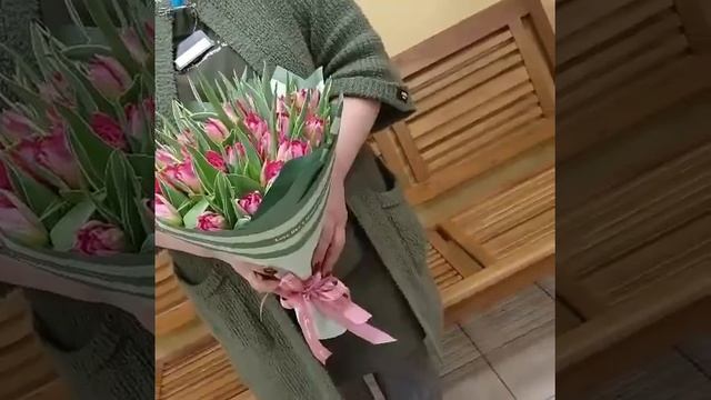 Букет розовых пионовидных тюльпанов в упаковке 29 шт "Цветочные грёзы"