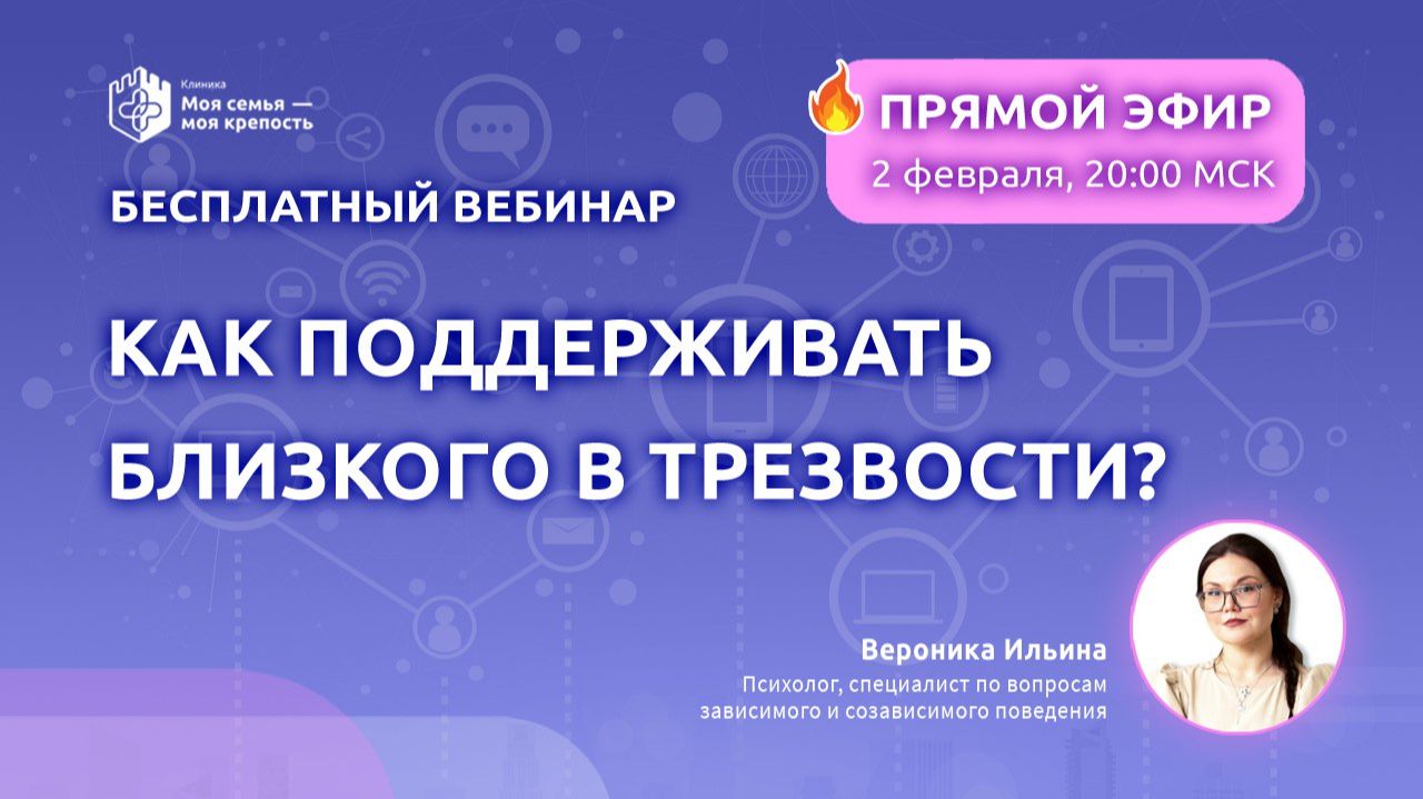 Посмотри наш бесплатный вебинар, чтобы узнать: ✅ что важно понимать о зависимости, прежде чем пытаться кого-то спасти ✅ как мы сами, не замечая этого, подталкиваем зависимого к срыву ✅ где заканчивается реальная помощь и начинается созависимость ✅ чем отличается сухая трезвость от реальной, устойчивой трезвости ✅ какие наши привычные действия незаметно нарушают процесс выздоровления ✅ почему попытки "делать правильно" часто усиливают чувство вины и напряжение ✅ с чего на самом деле начинается поддержка трезвости в семье ➡️Регистрация в Клуб заботливых решений: https://edu.mcmk.su/shkola-sozavisimost-oplata 💬 Канал Telegram https://t.me/mcmk_psy 🌐 наш сайт https://mcmk.su ✅ задать вопросы бесплатно вы можете по: ☎️ 8 800 551 41 71 (горячая линия) 📱 8 999 540 39 42 (WhatsApp, MAXи telegram) Мы поможем спасти твою семью!